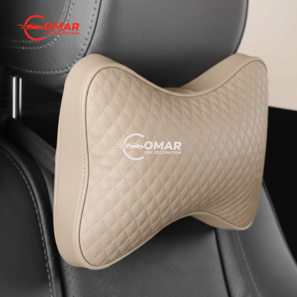2PCS Beige PU Leather Car Neck Pillow – Premium Comfort Headrest Cushion