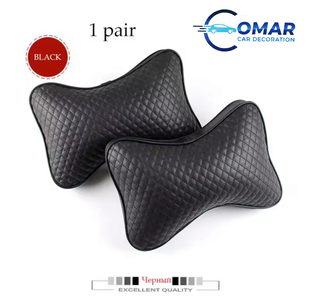 2PCS Black PU Leather Car Neck Pillow – Premium Comfort Headrest Cushion
