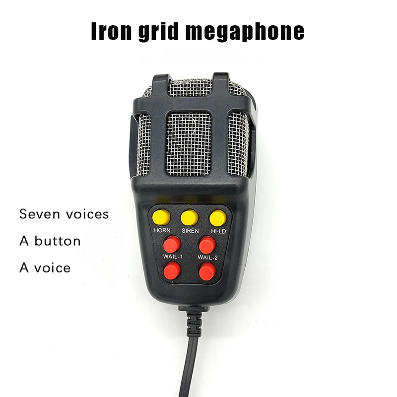 Powerful 7-tone electronic siren suitable for cars, motorcycles, and emergency vehicles. Features a loud 125dB output, 12V compatibility, built-in microphone, and durable loudspeaker for clear warning signals.