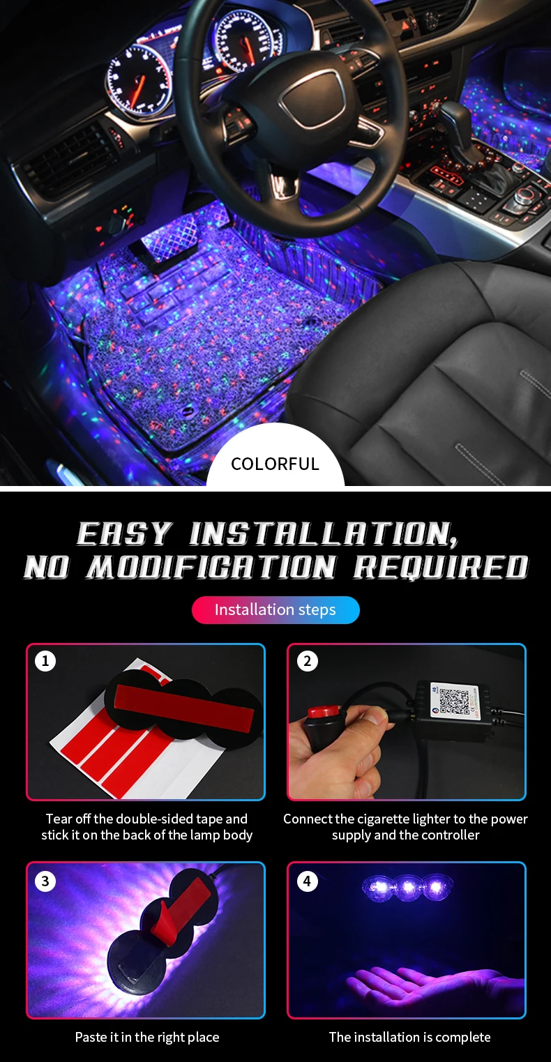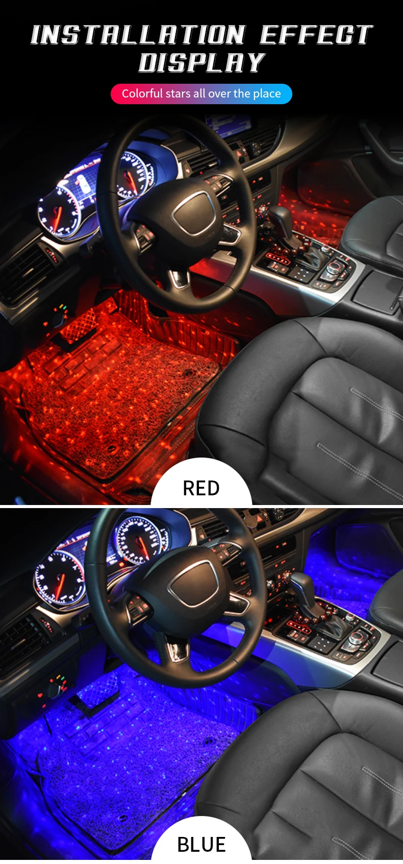 Car LED Foot Ambient Lights Atmosphere Decorative Star Lamp Colorful RGB Auto Interior Light With Cigarette APP/Remote Control
