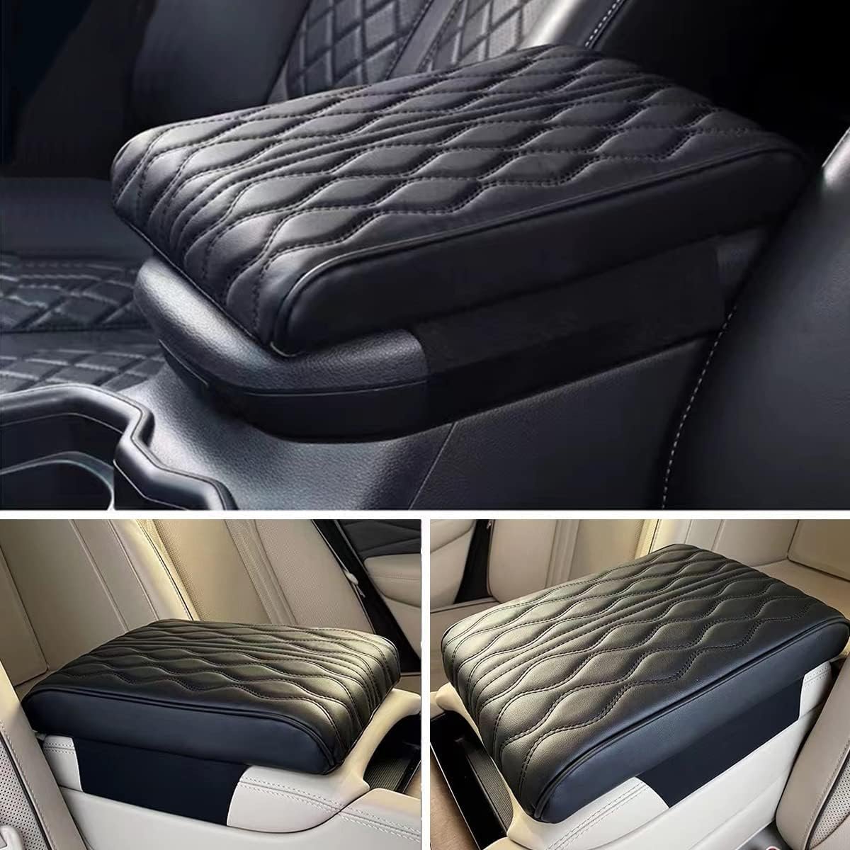 1Ã Wave Embroider PU Leather Armrest Mat / Storage Box Cover Pad
