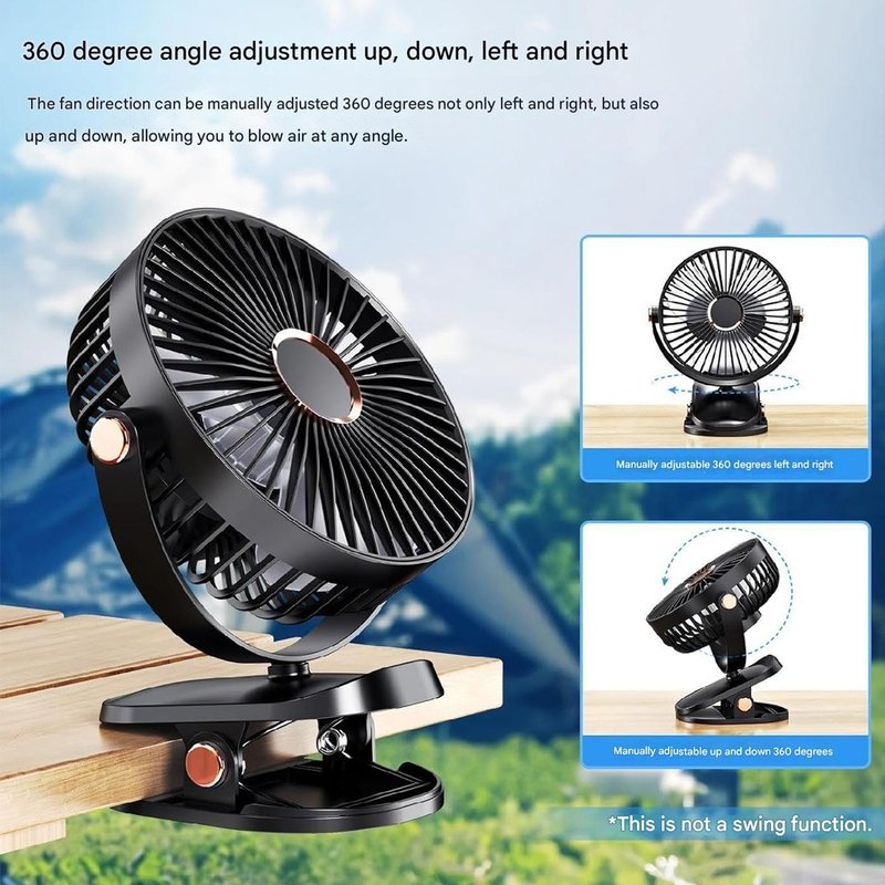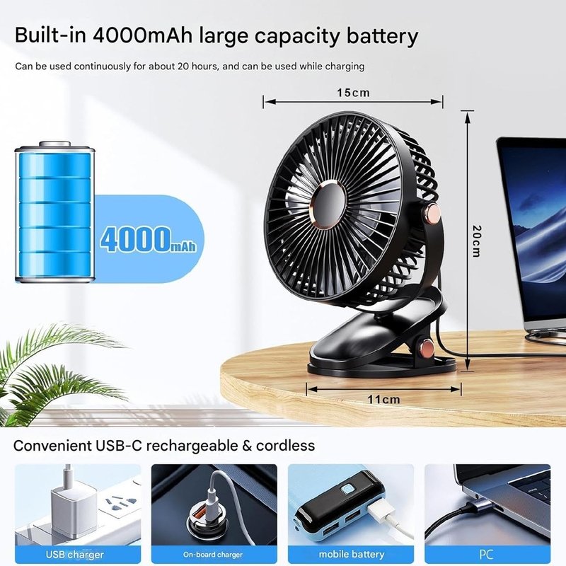 🌬️ Rechargeable Desktop Mini Clip Fan with LED Light! 💡