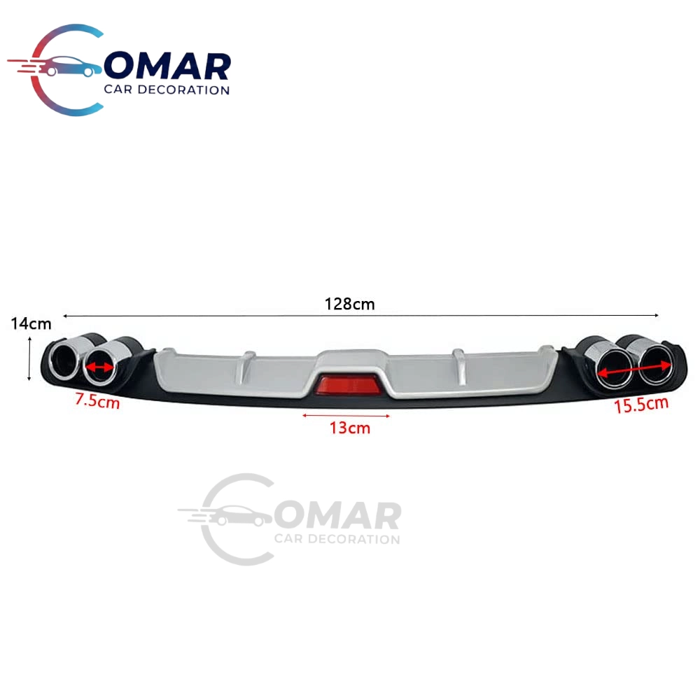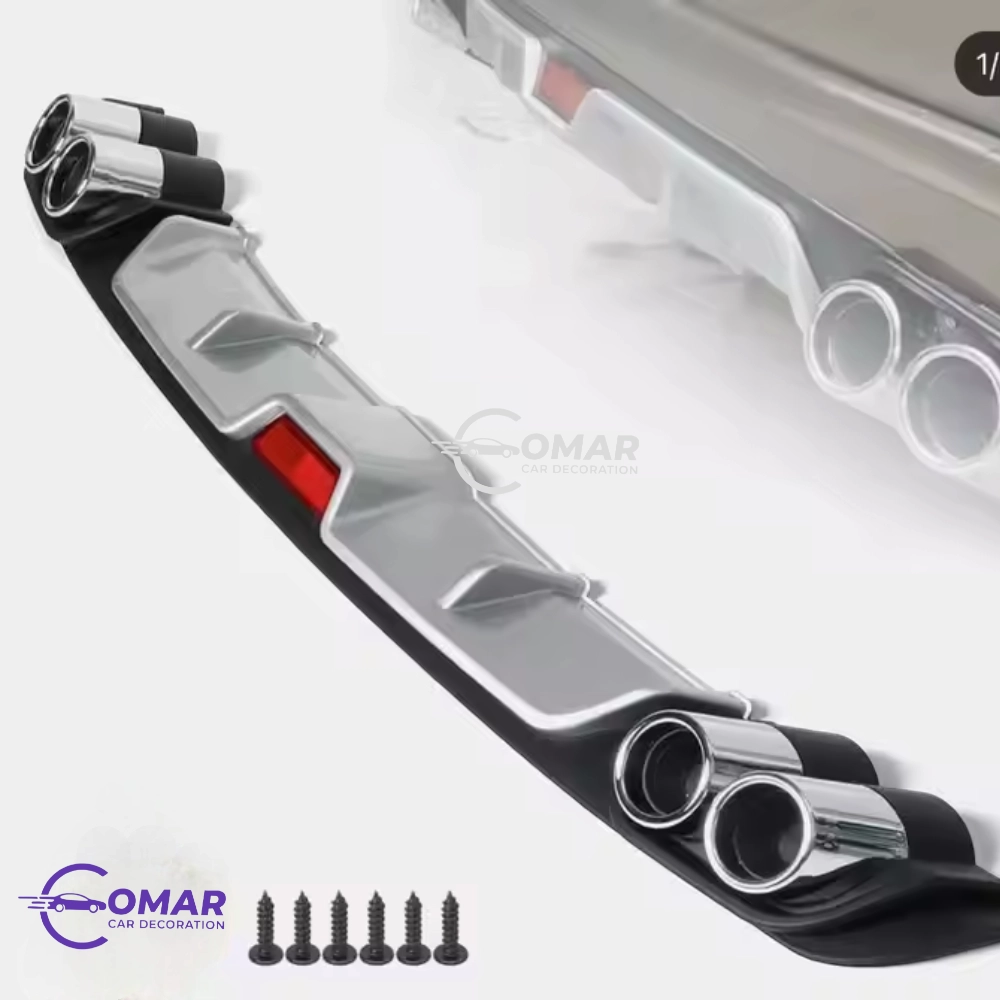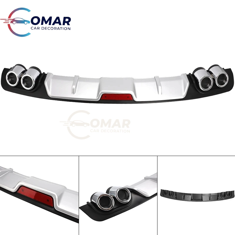 Universal Car Rear Bumper Lip Diffuser Spoiler 4 Holes Exhaust Pipe Decoration (Silver, 50 Inch)