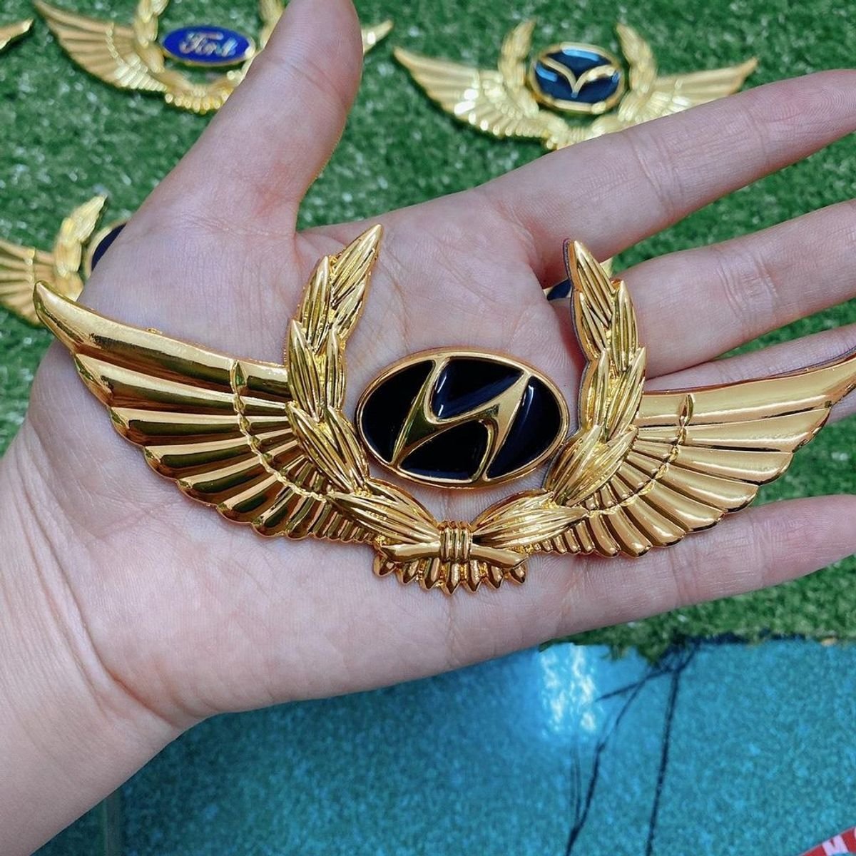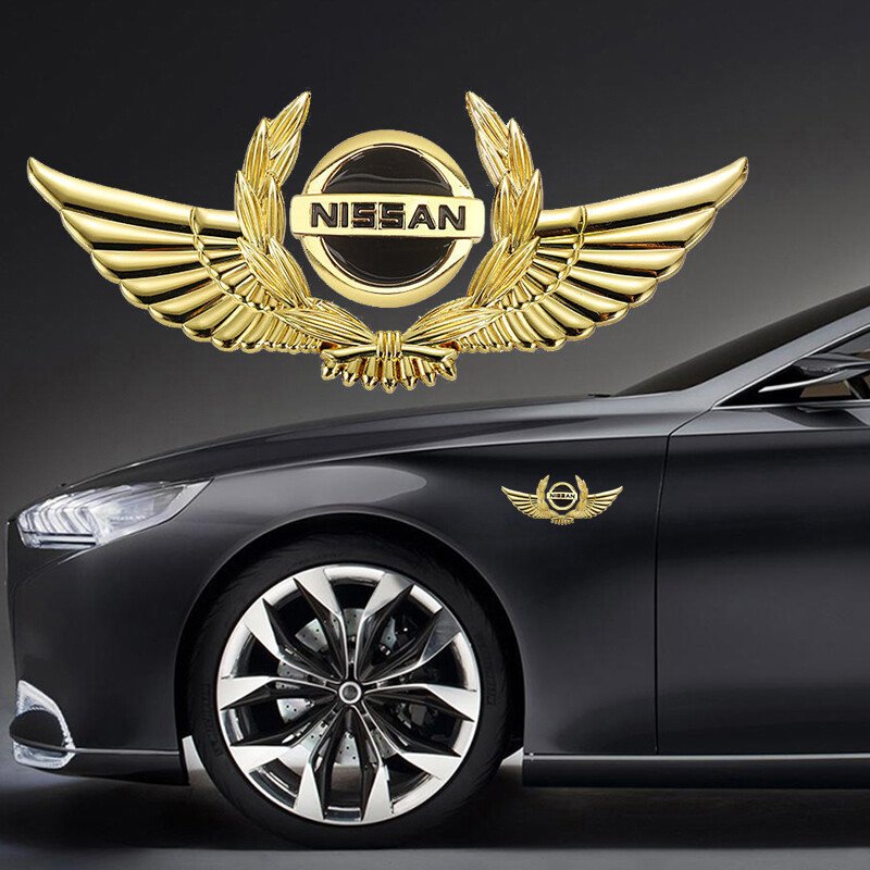 Premium Golden Metal Wings Car Logo Sticker