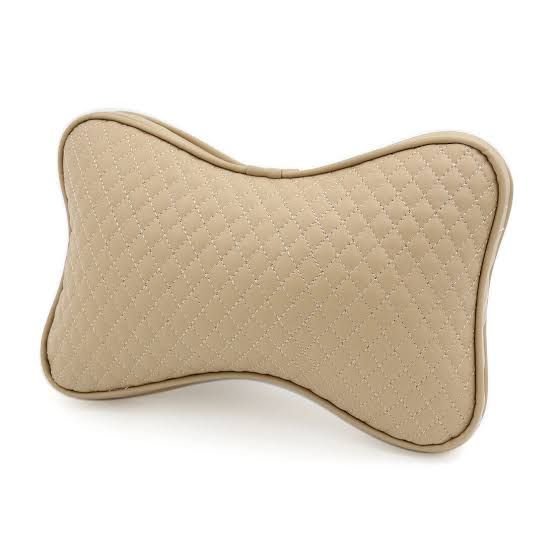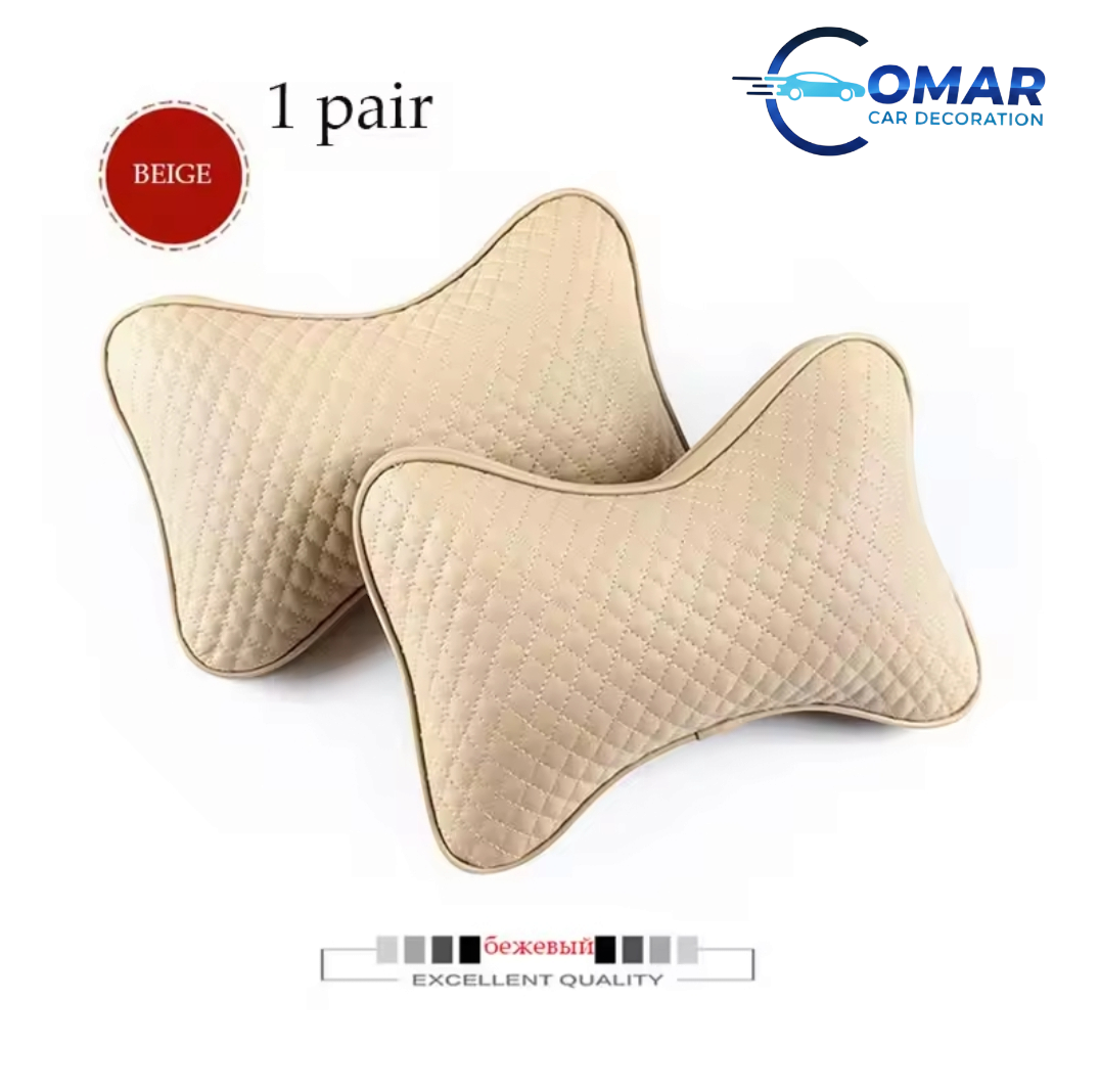 2PCS Beige PU Leather Car Neck Pillow – Premium Comfort Headrest Cushion
