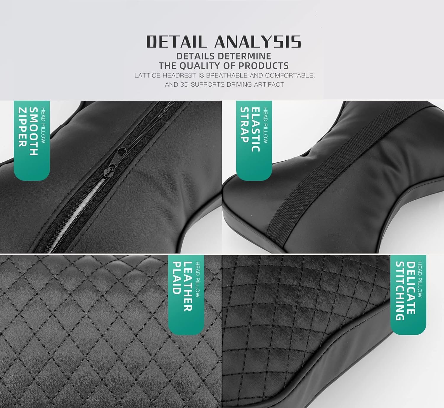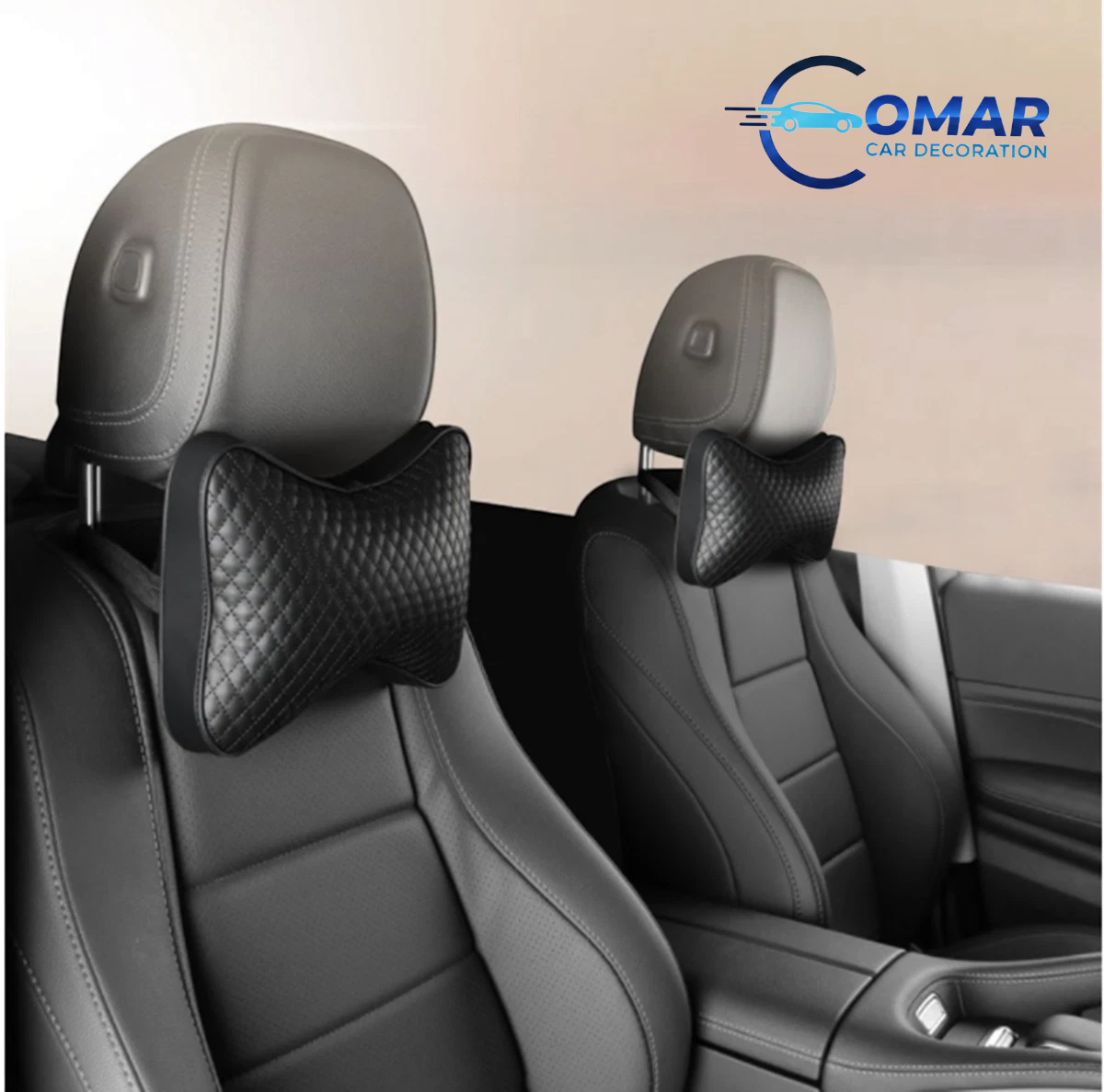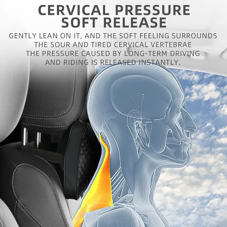 ড্রাইভিংয়ের সময় ঘাড় ও কাঁধের আরাম নিশ্চিত করতে এই 2PCS Black PU Leather Car Neck Pillow।